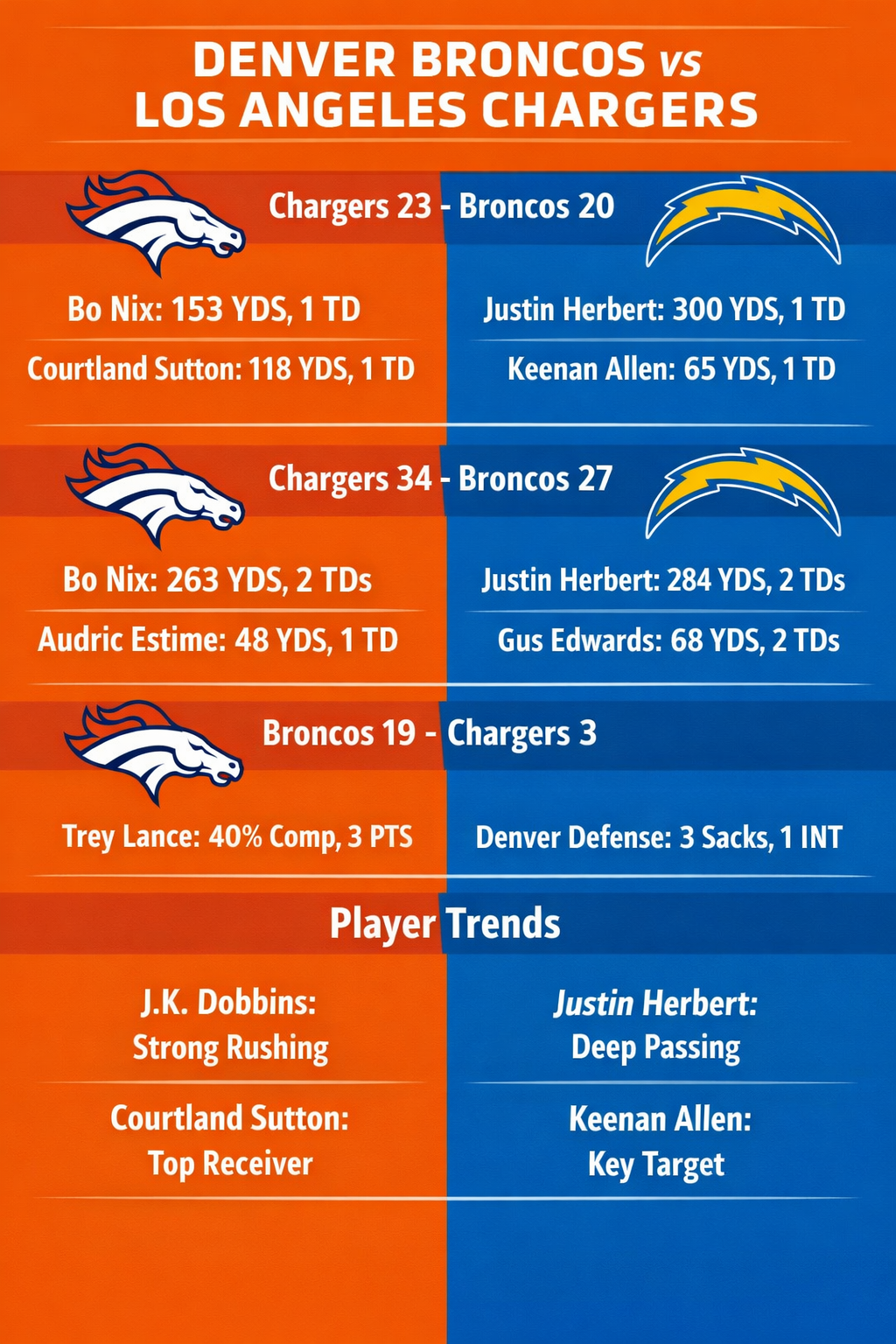 • Denver Broncos vs Los Angeles Chargers Match Player Stats